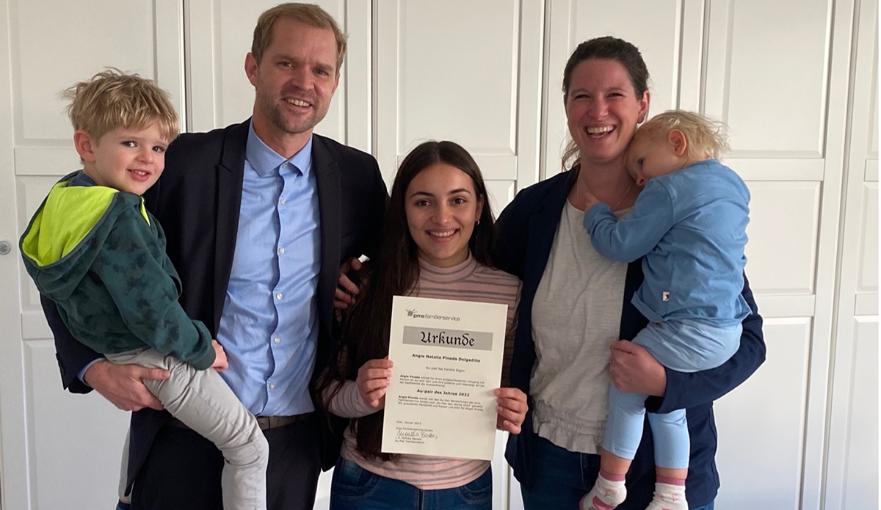 Au-pair des Jahres 2022: Angie Pineda aus Kolumbien mit ihrer Gastfamilie in Leverkusen.
