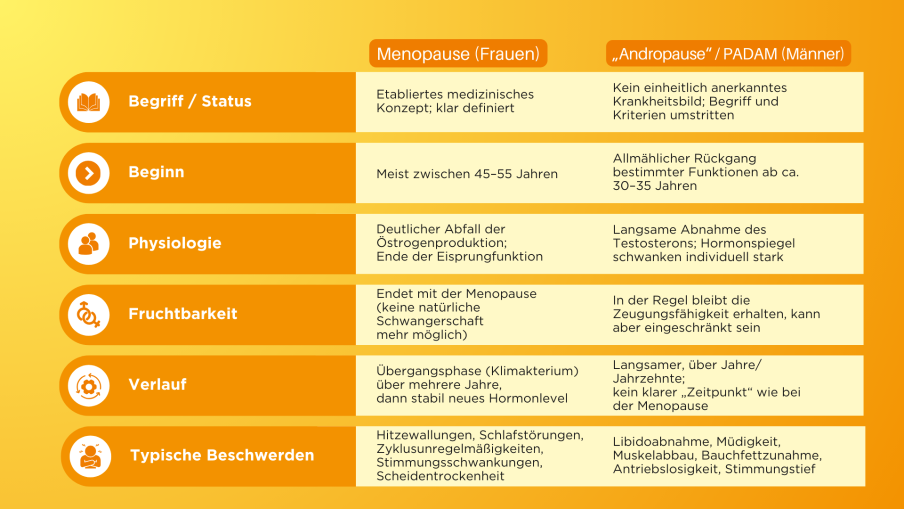 Vergleich Menopause und Andropause I Grafik: pme Familienservice GmbH