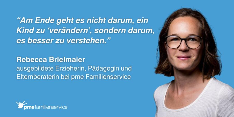 "Am Ende geht es nicht darum, ein Kind zu „verändern“, sondern darum, es besser zu verstehen." Rebecca Brielmaier, ausgebildete Erzieherin, Pädagogin und Elternberaterin